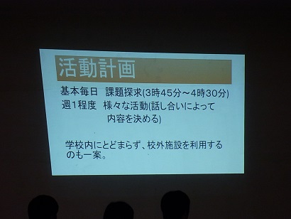 生徒会総会後は、部活動において新しく新設された学習部について部員自らが活動内容や目的をスクリーンを使用しプレゼンテーションを行いました。