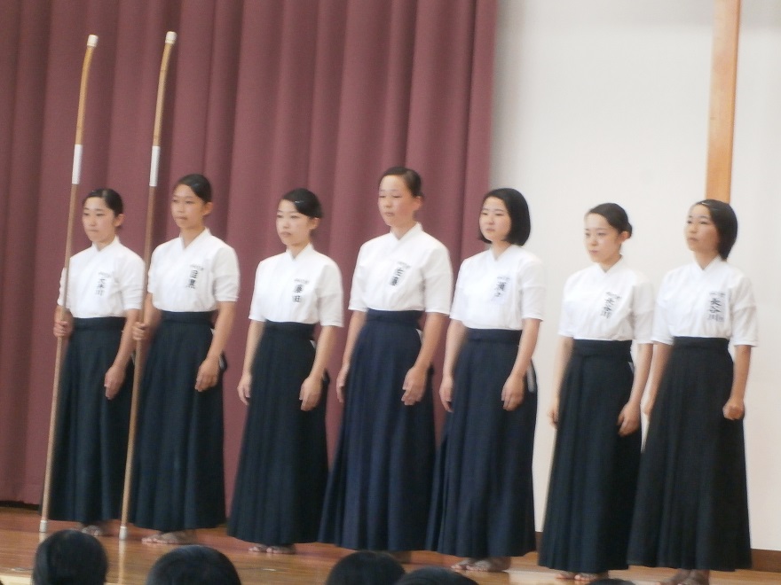 体験授業後には講堂にて、本校なぎなた部による演技競技の披露と部活動紹介が行われました。