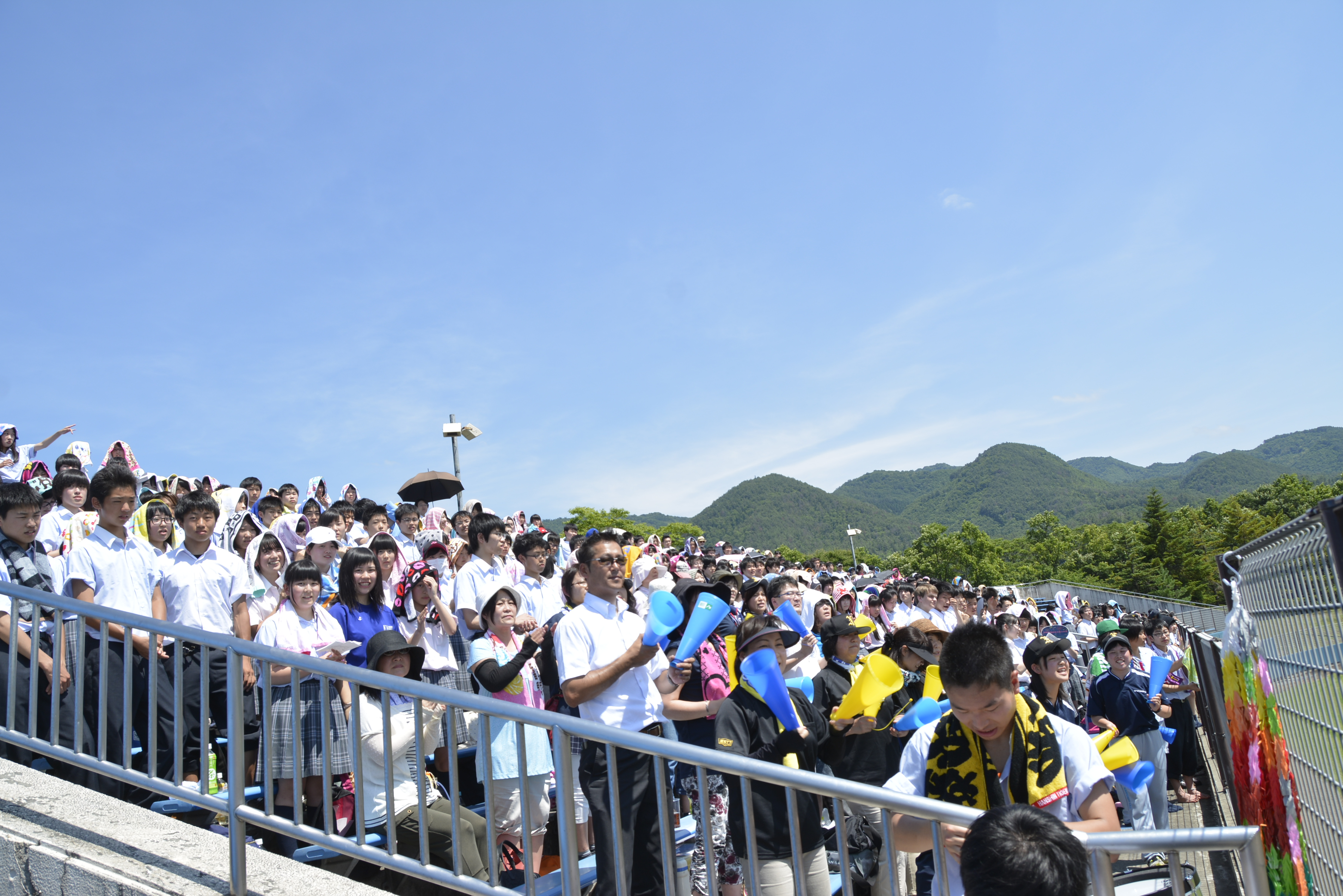 対戦校は会津学鳳高校でした。炎天下の中、野球部と生徒会を中心に元気よく応援が繰り広げられます。