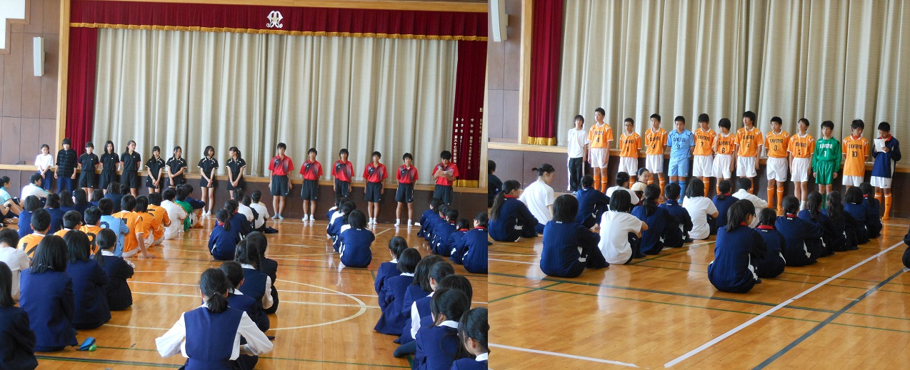 5月28日の6校時に中体連選手壮行会が行われましたので、その様子を紹介いたします。