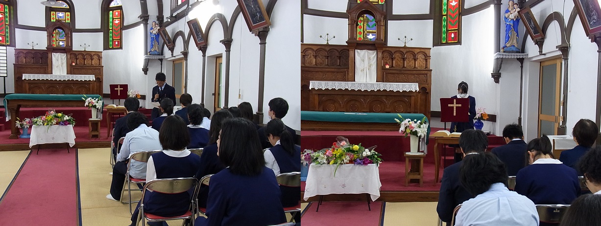 生徒が進行、オルガン伴奏、共同祈願、聖書朗読のそれぞれの役割を分担し、自主的に行っています。