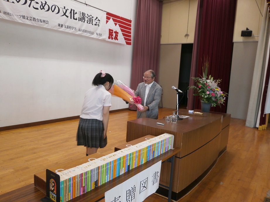 6月26日、福島民友新聞社と財団法人一ツ橋文芸教育振興会の主催および文部科学省・県教育委員会・集英社の後援で、高校生のための文化講演会が本校講堂で開催されました。