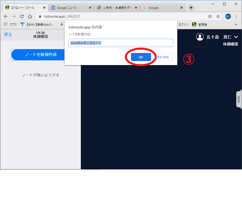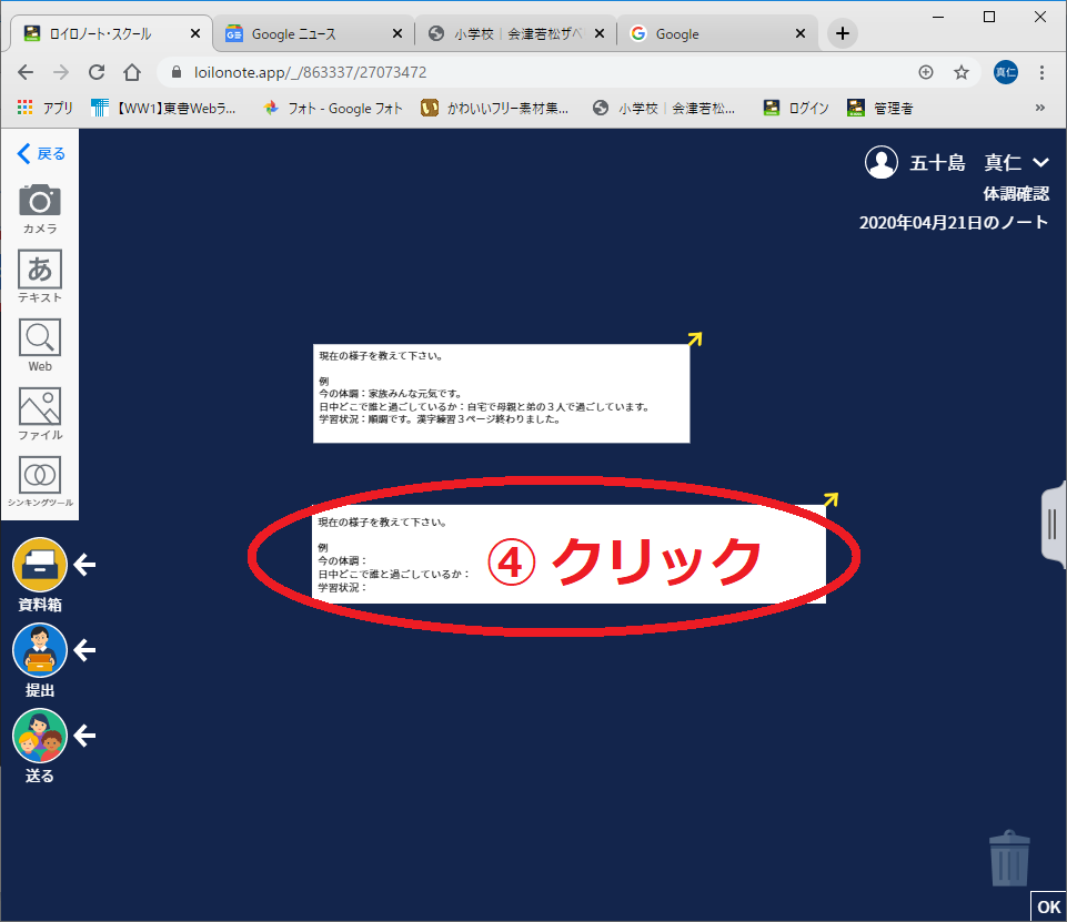その後、4月23日(木)の夜までにロイロノートでの返信がない場合には、24日(金)に電話をさせていただきます。