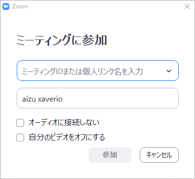 (1)オーディオ(音)やビデオ(映像)の設定をONにする。(今回はオーィオのみでの参加も許可しますので、ビデオはオフでも構いません。)