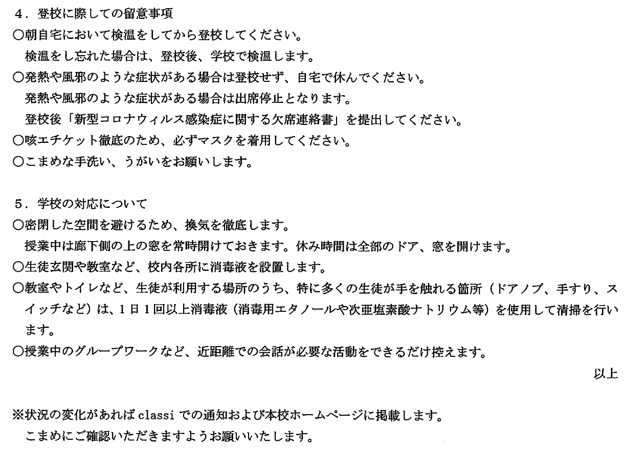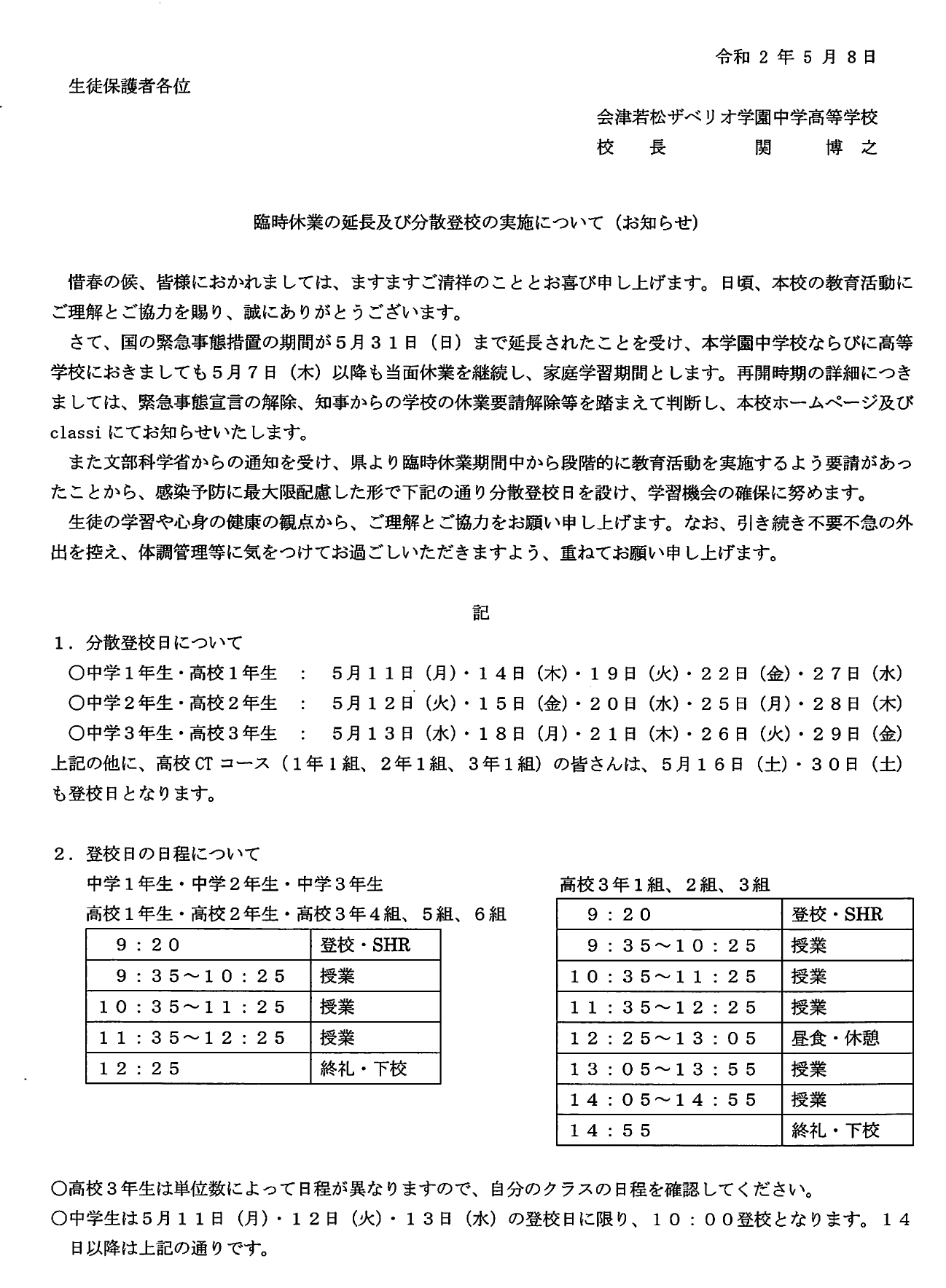 臨時休校の延長及び分散登校の実施について(お知らせ)